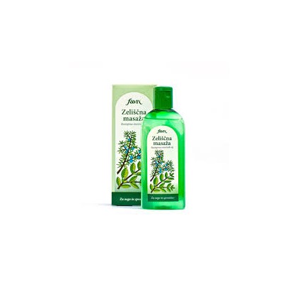 ZELIŠČNA MASAŽA 250 ml Raztopina eteričnih olj za nego in sprostitev. Zeliščna masaža je v celoti izdelana iz naravnih surovin. Narejena po stari preizkušeni recepturi, z mentolom in kafro ter eteričnimi olji evkalipta, bora, timijana in brina. Ne vsebuje konzervansov in barvil. Se hitro vpija v kožo in ne pušča mastnih sledi in madežev na oblačilih, primerna je za vsakodnevno nego telesa. Prednost izdelka je v njegovi učinkovitosti, prijetnem vonju in možni vsestranski uporabi. Izboljšuje gibljivost sklepov ter sprosti napetosti v mišicah in vezivnih tkivih. Osvežuje, sprošča in poživlja pri utrujenosti in večjih telesnih naporih. Povečuje prekrvavitev obolelih tkiv. Ogreje mrzle okončine. Blaži bolečine.